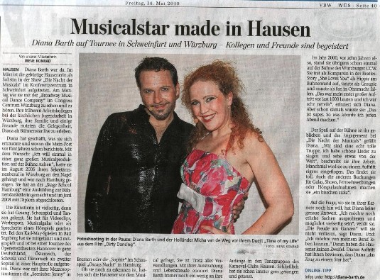(...) Jeder der sechs Gesangssolisten glänzte mit einer ganz individuellen Klangfarbe, (...) Die gebürtige Würzburgerin Diana Barth kombinierte absolute Bühnenpräsenz mit einem charmanten Strahlen (...) Mit der Zugabe „Thank you for the Music“, dem ABBA-Klassiker, brachte das Ensemble das Stimmungsfass zum Überlaufen und riss das Publikum endgültig von den Sitzen. Das Konzept von beeindruckenden Stimmen gemixt mit glitzernden Kostümen und perfekten Tanzeinlagen war aufgegangen.